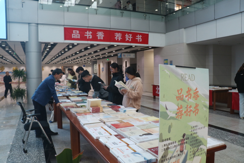 11月12日,开元官网在新长校区举办“品书香 荐好书”读者荐书活动,副校长徐华现场指导。
