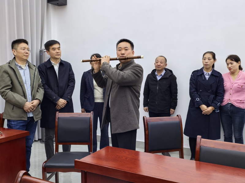 交流活动在盟员于基厚激情的二胡独奏《战马奔腾》中拉开序幕,激昂旋律点燃现场热情。竹笛博士宋克歆带来《扬鞭催马运粮忙》,仿佛把大家带入了丰收时节热闹非凡的运粮场景。盟员高金玉带领美术学院学生现场挥毫泼墨,一幅幅展现乡村美景的国画作品跃然纸上,将乡村的宁静与美好展现得淋漓尽致。新冈社区两位文艺爱好者还与盟员开展二胡合奏,他们默契配合赢得阵阵喝彩。