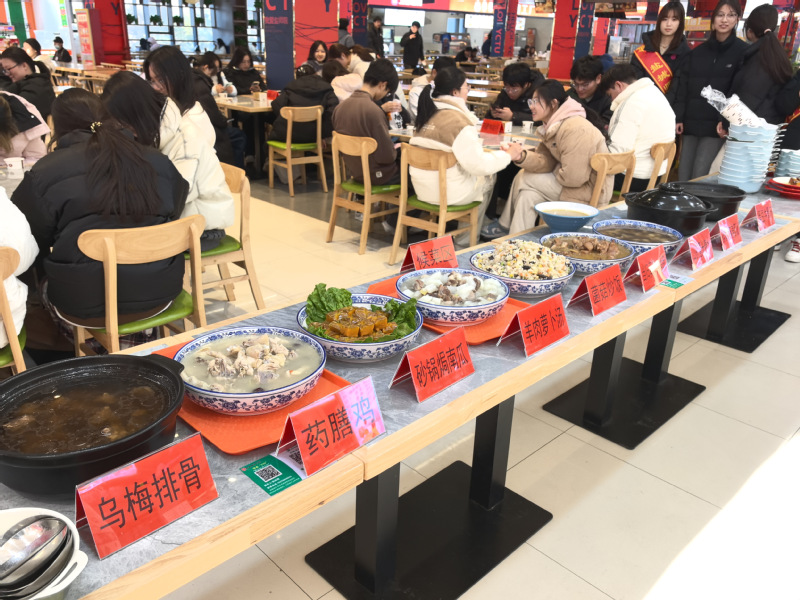 活动现场,在后勤工作人员和志愿者的共同努力下,一道道色香味俱佳的养生药膳被端上餐桌。志愿者热情介绍每道药膳的药材选用、文化渊源和功效作用。现场师生在品味兼具营养与风味的药膳的同时,进一步加深对中医药文化的理解与认同。