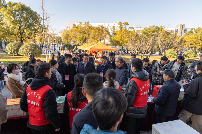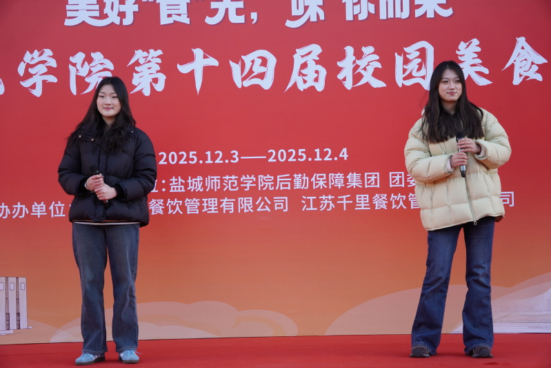 12月4日下午,学校第十四届校园美食文化节在新长校区萃园食堂北门广场开幕。学校党委书记张玉勤现场检查指导活动开展情况,副校长徐华,省战略与发展研究中心副主任、党委委员,省委驻响水县乡村振兴工作队队长,响水县委副书记冯树春出席开幕式并致辞。盐城经济技术开发区综合执法局副局长、党组副书记陆乔松参加开幕式。学校后勤保障部部长孔德根主持开幕式。