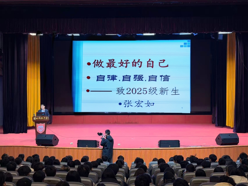 张宏如以《做最好的自己,自律·自强·自信——致2025级新生》为题,立足人才培养的长周期规律与当代青年成长特点,阐述生涯规划对个体成长的重要意义。他指出,大学既是专业知识深耕的“黄金期”,更是人格塑造、价值观养成的“关键期”,要积极做到“四个学会”,锻炼“九种能力”,围绕“自律、自强、自信”勾勒出清晰成长路径。他强调,自律是成长的起点,要摒弃“躺平”与妥协心态,坚持阅读明理、思考增慧,注重多维自我调适,在融入集体中主动成长。自强是进步的动力,要清醒认知自身优势与短板,科学锚定发展方向,统筹学业精进与能力拓展,在专业锤炼中提升本领。自信是人生的底色,要恪守严己宽人的准则,理性处理情感关系,持续聚焦自我提升,不断优化心理状态,以昂扬姿态直面各类挑战。
