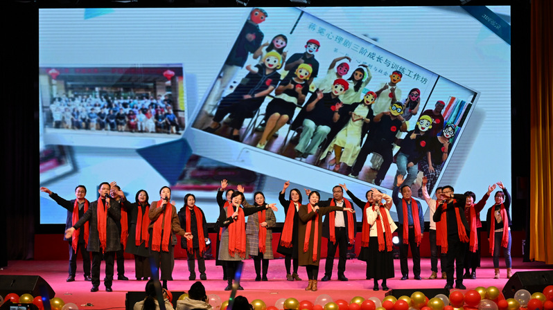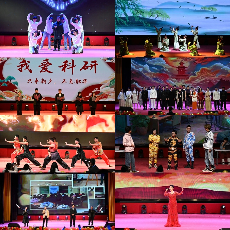 文艺演出高潮迭起、精彩纷呈。说唱《阳光开朗辅导员》以动感旋律展现出辅导员亦师亦友的青春形象,瞬间点燃现场气氛;舞蹈《清风徐来》舞姿轻盈、意蕴悠长,尽显国风韵味;开元官网首届研究生演绎的朗诵《我爱科研》,字里行间满是对科学的炽热追求,道出科研人的坚守与浪漫;师生同台的走秀《国风雅韵》融古典雅致与当代风姿于一体,彰显传统美学神韵;武术《武魂贺新年》招式刚劲有力,展现体院学子的意气风发与中华武魂的热血豪情;小品《花园网吧》以幽默诙谐的校园故事,传递青春成长的人生哲理;歌曲《再回首》的悠扬旋律唤起青春记忆,《国旗之恋》的铿锵曲调抒发炽烈家国情怀。盐师学工人合唱《送你一朵小红花》温情亮相,手心撰画的小红花与柔和灯光相映成趣。歌声里,既有对学工人员躬耕育人、默默守护的感恩,对学子在逐梦路上勇敢前行的赞许,也饱含着师生同心、守望相助的深厚情谊。现场同学还自发为现场所有领导、老师献上一枝花语为感恩的火红康乃馨。