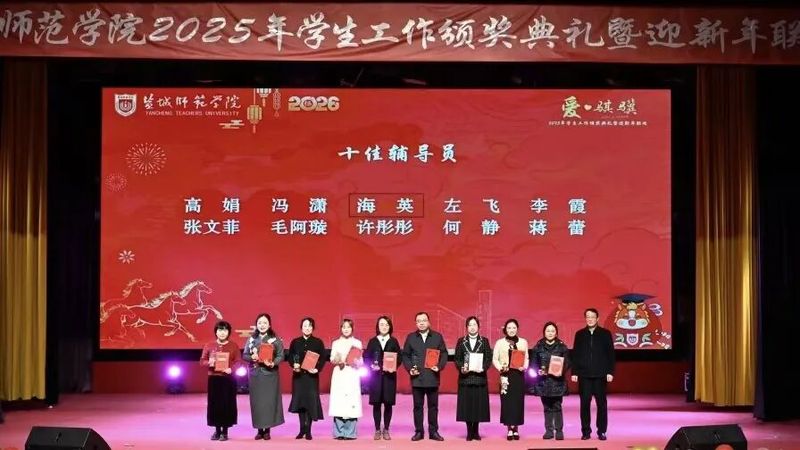 张玉勤在致辞中代表学校党委,向受表彰的先进集体与个人致以热烈祝贺,向躬耕学工一线的辅导员、班主任及老师们致以崇高敬意,向盐师学子送上诚挚新年祝福。他强调,高校辅导员队伍是与教学、科研、管理并重的“第四支队伍”,是思政教育主力军、学生成长引路人、人才培养助推者。他指出,2025年全体学工人以“爱”为犁、以“责”为种,让学生工作思想引领有温度和深度、管理服务有力度和精度、队伍建设有强度和厚度,切实回应学生成长需求,盐师学子在各类赛事中捷报频传。他希望,全体学工人牢记为党育人、为国育才使命,做学子成长路上的点灯人、摆渡人,勉励盐师学子以骐骥之姿乘势而上、笃行不怠,让青春在强国建设、民族复兴征程中绽放华彩。张玉勤还为“十佳辅导员”颁奖,与会领导先后为2025年在学生工作中获奖的先进集体和个人颁发荣誉证书与奖牌。