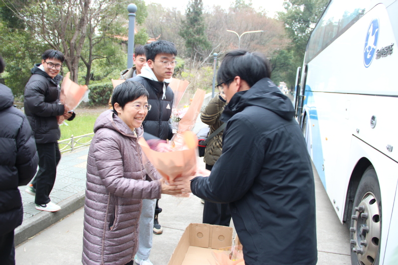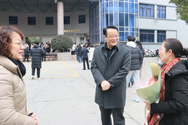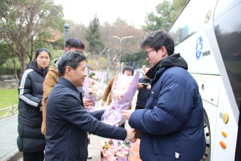 欢迎仪式现场气氛温馨而热烈,校领导与支教团成员亲切握手,细致询问他们在支教期间的工作与生活情况,并对他们扎根边疆教育、倾情奉献的精神予以高度赞扬。学生代表手持鲜花向载誉归来的学长学姐与老师表达敬意与祝福。全体人员在图书馆前合影,定格这一难忘时刻。