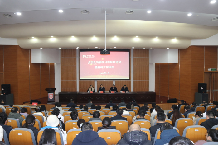 各二级学院院长、分管科研工作副院长、省级科研平台负责人、科研秘书、申报2026年各类国家级科研项目人员、科学研究院工作人员参加会议。