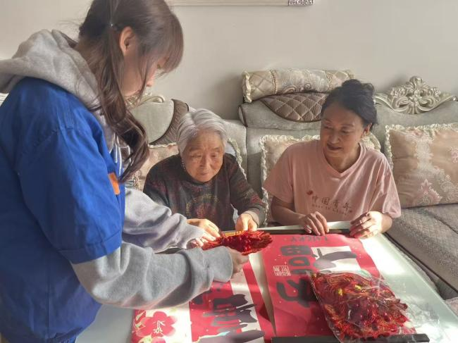 大学生志愿者耐心陪伴社区儿童开展手工创作。从折纸到创意贴画,志愿者手把手指导孩子们动手操作,细致讲解制作技巧,鼓励孩子们大胆发挥想象,让社区儿童在欢声笑语中感受到了陪伴的温暖。志愿者还走进社区图书馆,开展书籍整理志愿服务活动。大家分工协作,有条不紊地将散放的书籍按照类别放回书架,并认真擦拭落灰书籍和书架,整理书标,让社区图书馆焕然一新。志愿者登门走访社区独居、高龄老人,亲手将红彤彤的春联和满满的祝福送到老人手中。大家一起闲话家常,叮嘱日常,贴心的关怀让老人们倍感温暖。一张张福字添年味,一副副春联传温情,以暖心行动不断传递对老年群体的关爱,用实际行动传承中华优秀传统美德。