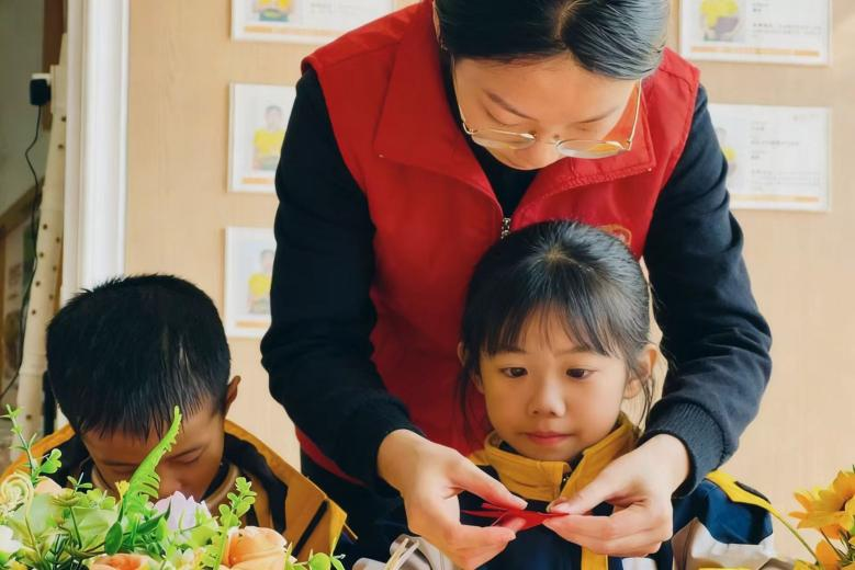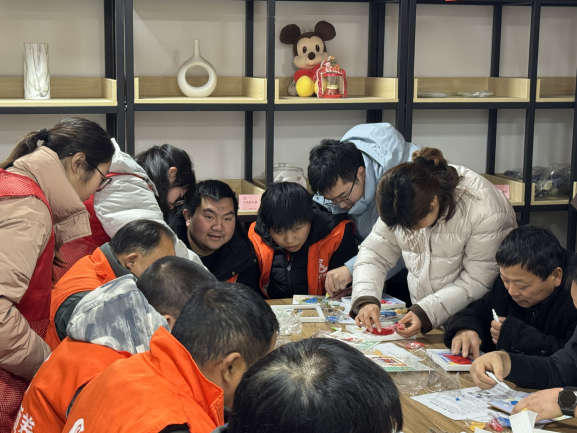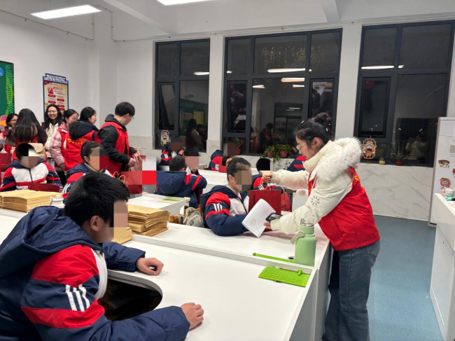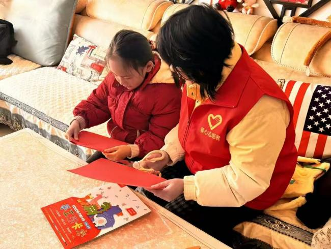 活动中,志愿者开展了内容丰富的新春主题活动,向寒托班的孩子普及春节传统习俗,一起制作窗花和剪纸等小手工。红彤彤的纸片在孩子们手中翻转飞舞,很快变成了一张张带着吉祥寓意的窗花。孩子们拿着自己的作品互相展示,脸上洋溢着满满的成就感。现场还设置了“年味小课堂”,志愿者用生动有趣的故事,讲解了扫尘、贴春联、守岁等春节习俗的由来,让孩子们在欢声笑语中感受传统文化的魅力。