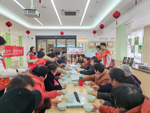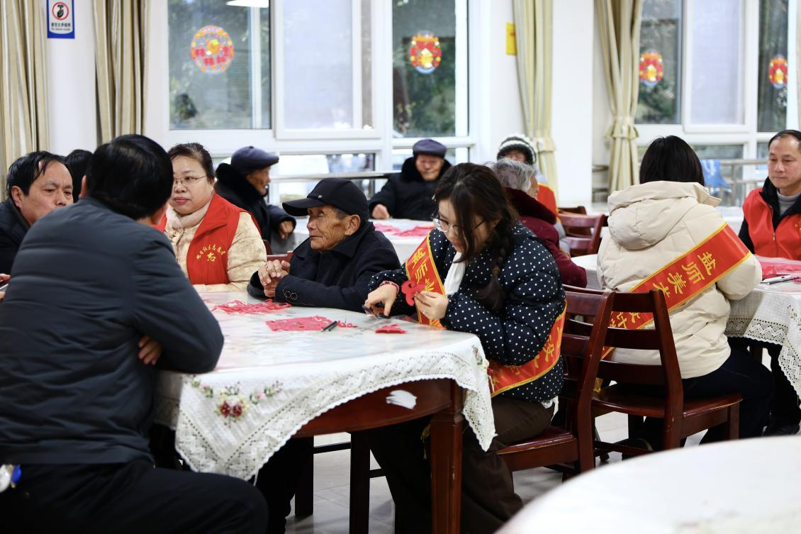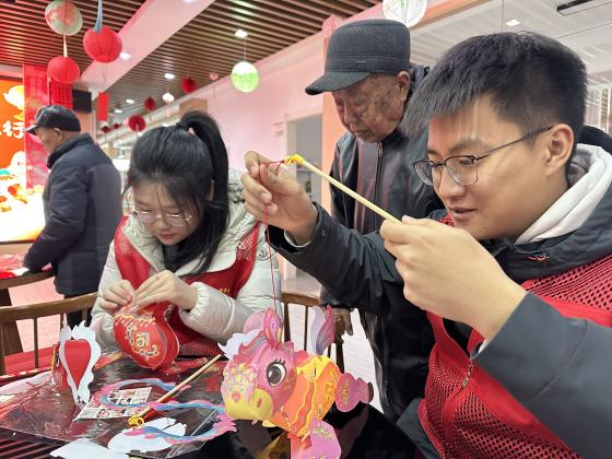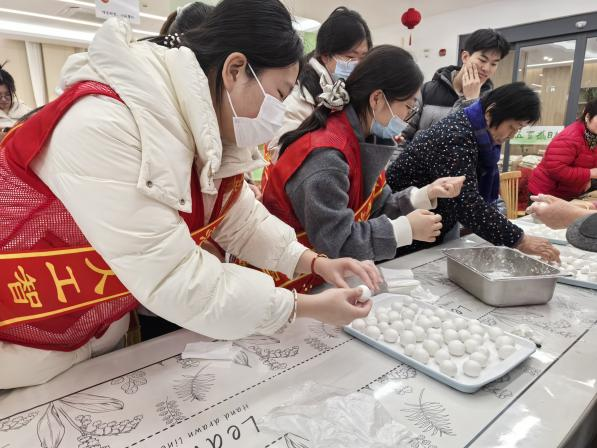 活动现场设置了“夹汤圆”“猜灯谜”“手工汤圆制作”三大民俗互动环节。老人们用筷子稳稳夹起乒乓球模拟“夹汤圆”,志愿者在一旁加油鼓劲,气氛轻松热烈;猜灯谜环节涵盖成语、地名、日常物品等内容,老少齐参与,笑声不断;在手工汤圆制作中,老人手把手指导青年志愿者揉面搓圆,边做边拉家常。三项活动将传统年俗与志愿服务相结合,营造出浓厚的节日氛围。