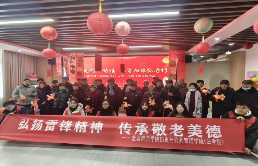3月3日上午,历史与公共管理学院(法学院)志愿者参加在亭湖区新兴镇三灶村新时代文明实践站开展的“一盏花灯一份情,元宵相伴敬老行”浓情元宵主题活动。