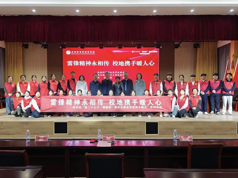 3月4日下午,商学院团委与便仓镇联合举办“雷锋精神永相传 校地携手暖人心”志愿服务暨校地共建活动。学校团委副书记刘成,商学院党委副书记秦圣阳,便仓镇党委副书记李楠、组织委员钱静文出席活动。