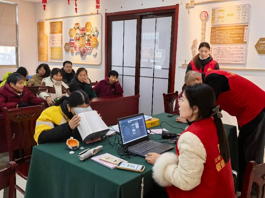 活动现场,面对络绎不绝前来检查的社区居民,志愿者始终保持热情耐心的态度,主动搀扶腿脚不便的老年居民就座,细心协助居民填写个人信息登记表,耐心解答大家关于检查流程、日常护眼的各类疑问,全程贴心陪伴、周到服务,让居民感受到浓浓的暖意。专业医师则细致为居民排查眼部问题,给出针对性护眼建议,志愿者与医护人员默契配合,整场公益服务活动有序推进、高效落地。