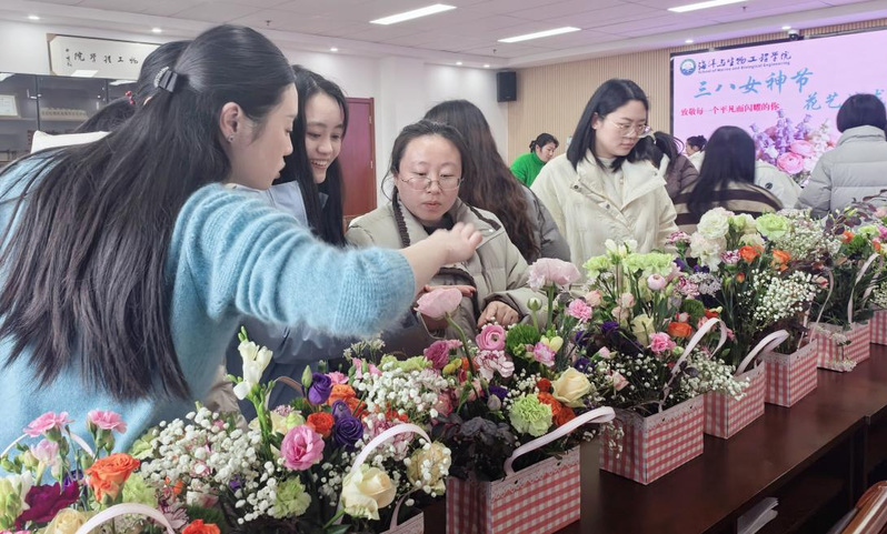3月7日,文学院以“春润盐师桃李情 暖巾帼芳华”为主题开展庆祝活动,女教师代表分享教学感悟与成长心得,真挚的话语引发强烈共鸣。并为女教职工送上鲜花,将节日祝福与关怀送到每位老师身边,现场还进行了手工体验环节,沉浸式创作,节日幸福感拉满。海洋与生物工程学院举办“花香悦生活 巾帼绽芳华”花艺插花活动,女教师在专业指导下创作插花作品,相互交流插花心得,分享生活感悟,感受艺术与生活的美好。商学院、数字经济学院组织女教师赴淮安周恩来纪念馆、周恩来故居开展“红色寻访悟初心 巾帼风韵映芳华”主题教育活动,全面了解周总理为党和人民事业鞠躬尽瘁、无私奉献的光辉一生,深刻感悟“为中华之崛起而读书”的远大志向与崇高精神风范,在沉浸式学习中接受党性洗礼。马克思主义学院组织开展“芳华悦己·与花同行”妇女节主题活动。女教师们齐聚珠溪古镇“言+买书亦生活空间”,在花艺创作中修枝剪叶、陶冶情操,感受春日自然之美。