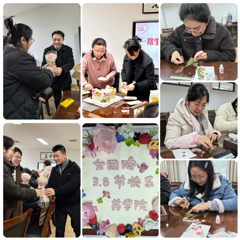 此外,各二级学院精心组织了形式多样的庆祝活动。3月4日下午,药学院分工会精心组织“一路生花,熠熠芳华”主题庆祝活动,女教职工和女学生代表参加座谈交流,并亲手制作干花标本相框,体验手工创作的乐趣,寄托对美好生活的向往。学院为女教职工送上鲜花和蛋糕,感谢大家的辛勤付出。外国语学院分工会在通榆校区主楼举办“外语巾帼争先 健康悦动谱新篇”趣味健身活动,同学们手持鲜花与糖果为老师送上惊喜祝福,随后踢毽子、跳绳等项目让女教职工们在运动中收获快乐与友谊。音乐学院、淮剧学院工会组织开展了“指尖生花,绽放芳华”主题花艺活动。学院女教职工积极参与,共同在花香中感受艺术之美,体验创作之趣。