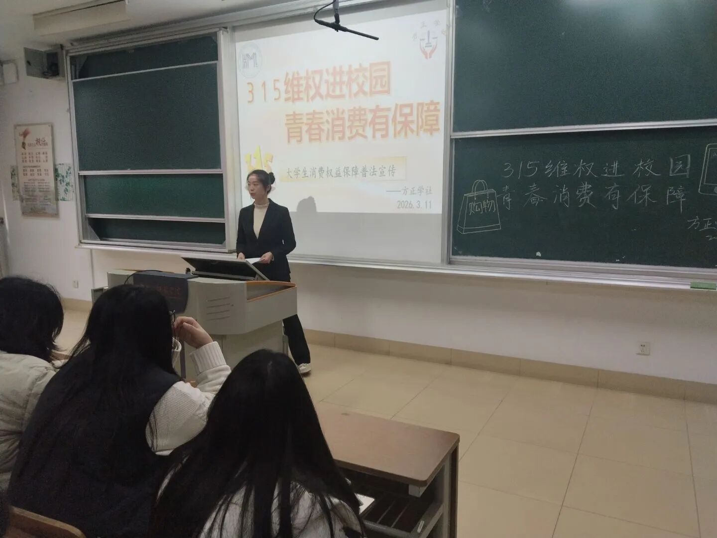 在校内,志愿者开展“法治维权进校园,青春消费有保障”主题宣讲活动,结合校园贷、虚假抽奖等案例普及法律知识,引导学生理性消费、依法维权。此外,还通过“霸王条款来找茬”、签名打卡等趣味普法互动活动,让大家在轻松氛围中掌握消费维权技能。