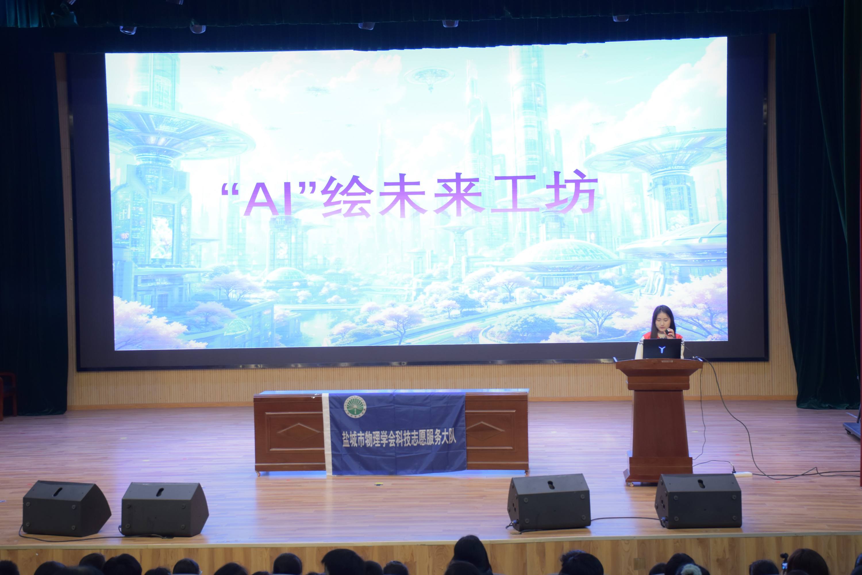 在“AI 绘未来” 互动工坊环节,科技与艺术碰撞出创意火花。志愿者现场演示 AI 绘画工具操作方法,围绕 “我心中的未来世界”“科学梦想” 等主题完成 “提示词设计—AI 生成—创意优化” 的创作全过程,让同学们感受科技与艺术融合的无限可能。