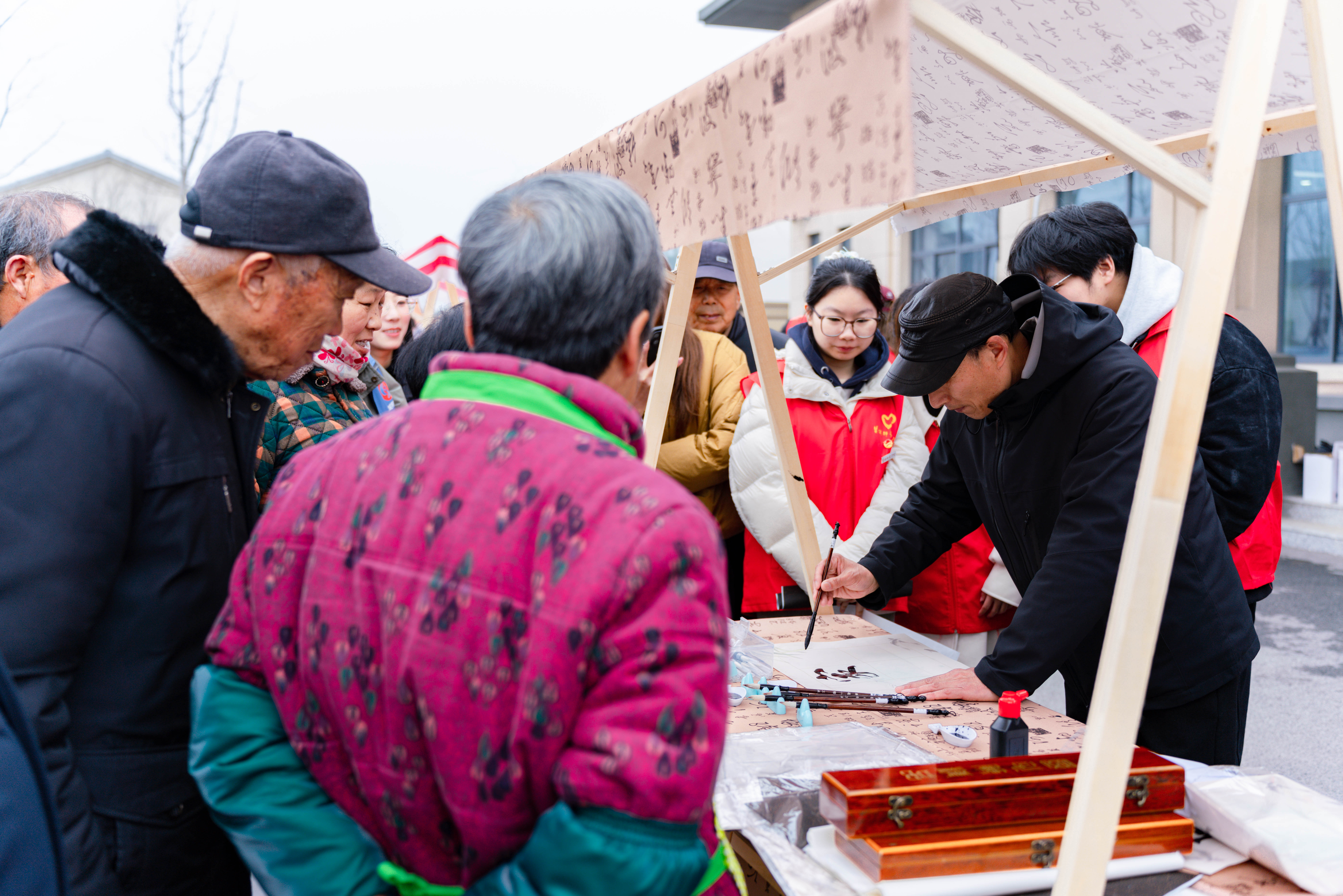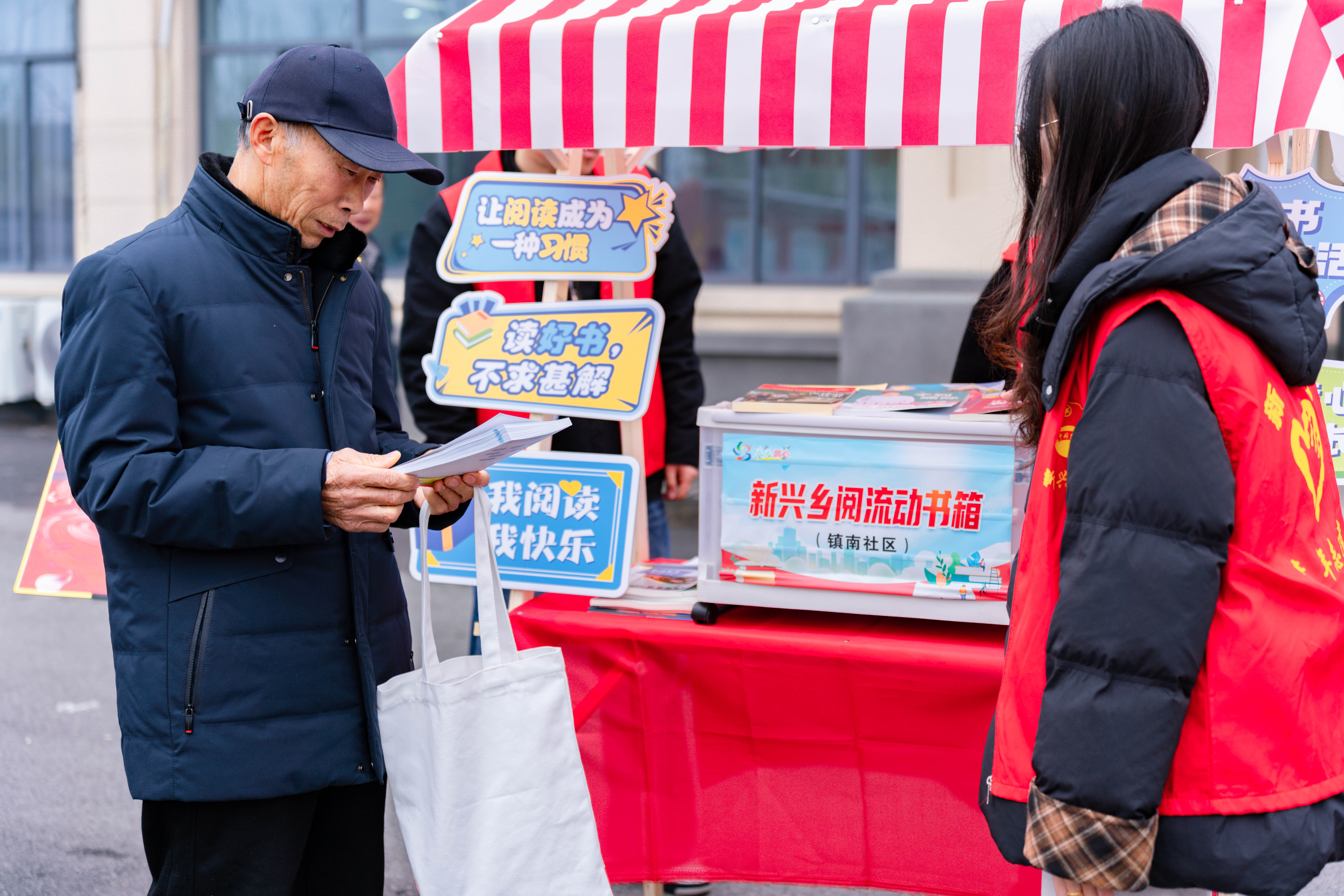 书法义写摊位前墨香四溢,书法爱好者与学生志愿者围绕雷锋精神、移风易俗、家风家训等主题,现场创作并赠送书法作品,学生志愿者也纷纷提笔体验,在书法老师的指导下写下“学雷锋”字样,用笔墨感悟榜样力量。在“安全义讲”摊位,志愿者配合民警向居民普及防范电信诈骗知识,协助设置反诈套圈游戏,让大家在轻松玩乐中牢记反诈要点,将反诈知识与暖心福利结合,让反诈宣传更接地气、深入人心。依托“新兴乡阅流动书箱”志愿服务项目,志愿者将装满农业技术、养生保健、红色故事等书籍的流动书箱搬到现场,吸引众多村民驻足翻阅。书香推广志愿者热情地向群众介绍流动书箱服务项目,邀请大家现场免费借阅。