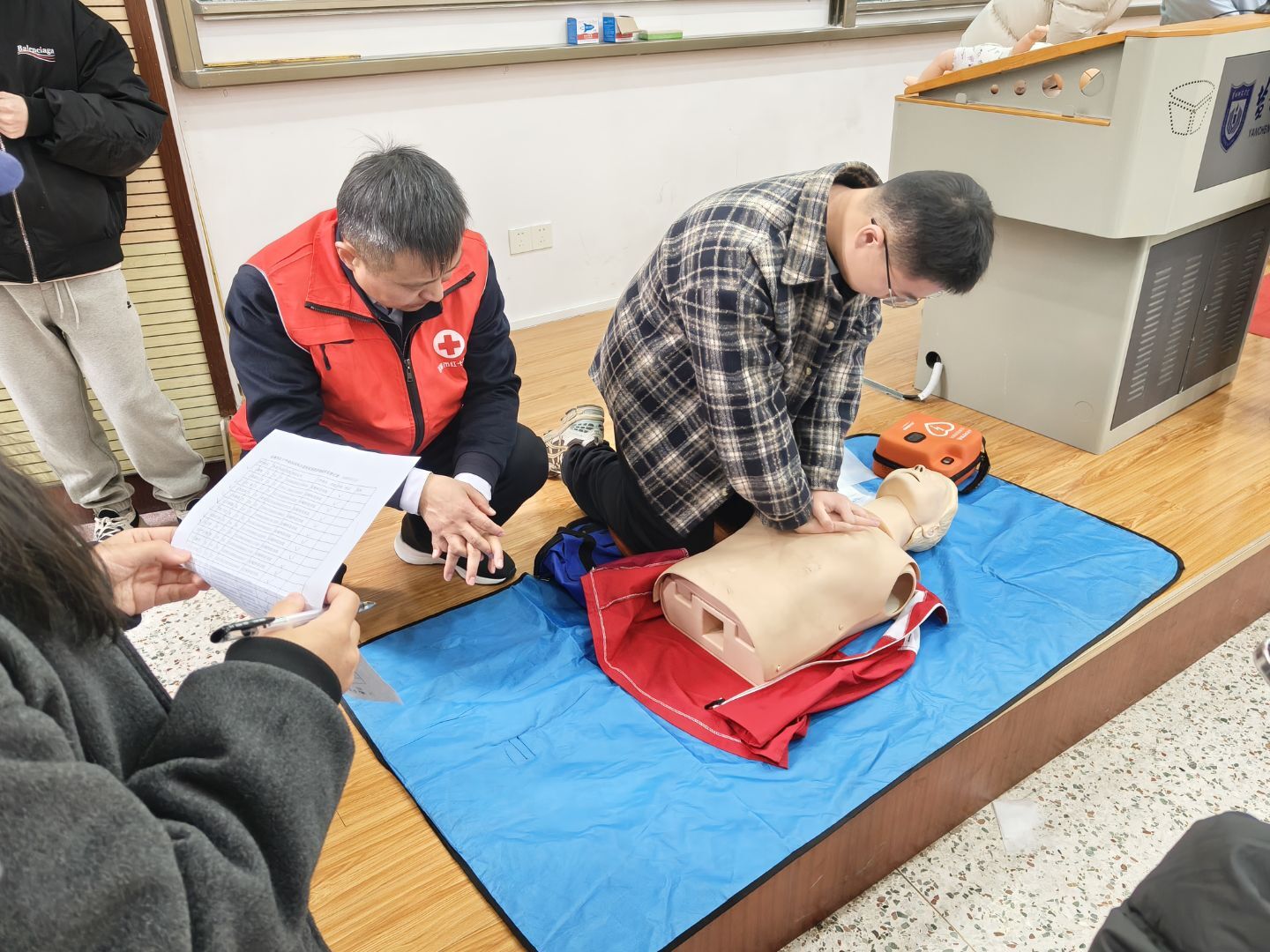 在应急救护培训现场,50余名学生参与其中。校医院医护人员系统地传授了心肺复苏、海姆立克急救法、止血包扎等实用技能,重点讲解了急救“黄金4分钟”的处置方法,并针对不同人群细化施救要点。学生分组实操练习,医护人员全程现场指导、纠正动作,知识问答环节更是加深学生对急救知识的理解。