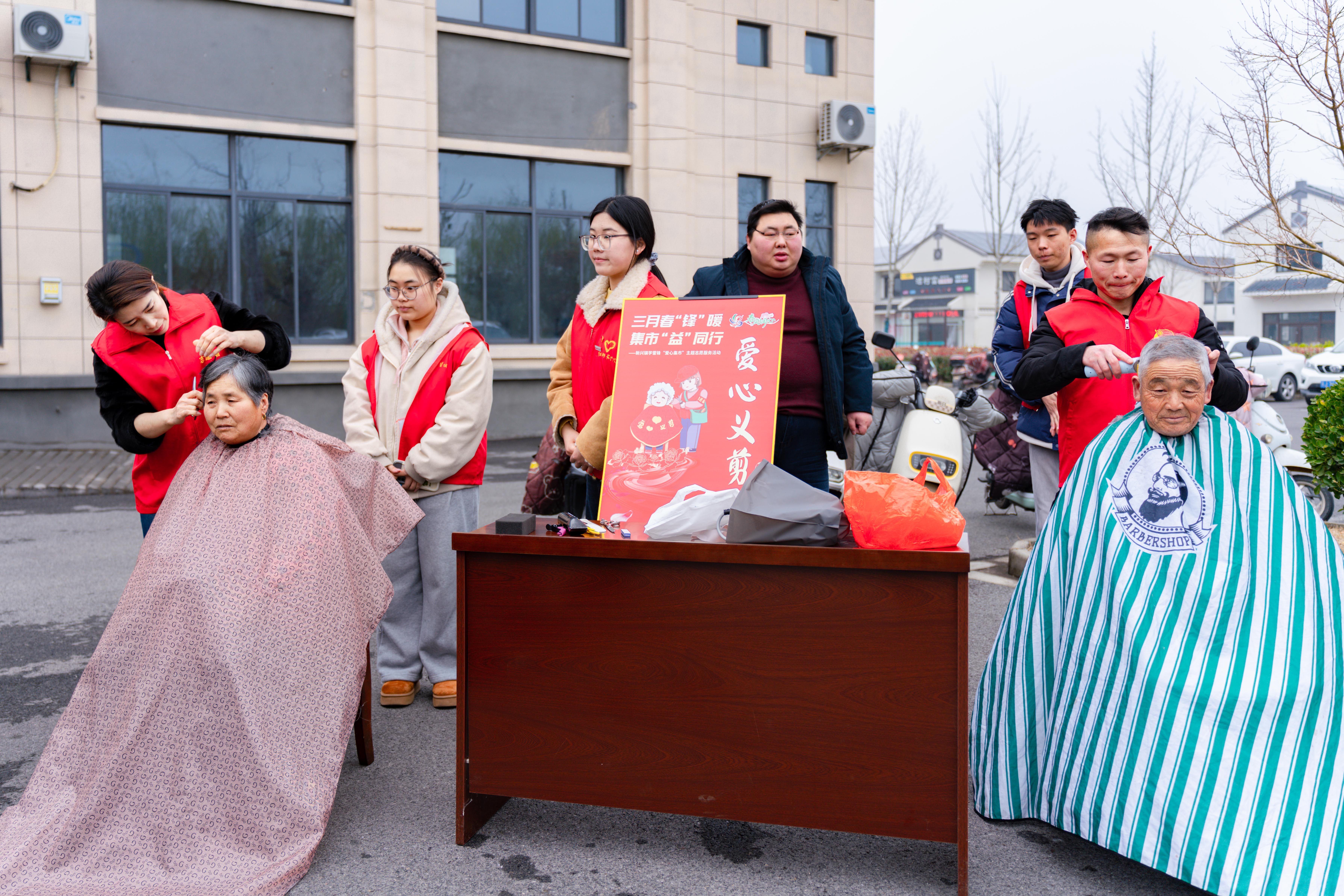 活动现场,五个特色服务摊位依次排开,吸引众多居民驻足参与。学生志愿者身着“红马甲”,用热情和专业知识为居民送去贴心服务,成为集市上一道亮丽的风景线。在“健康义诊”摊位,永丰卫生院的医护人员正耐心为居民测量血压、血糖,细致解答关于慢性病防治的疑问,同时结合季节特点普及春季养生、传染病预防等健康知识。学生志愿者协助登记信息、发放健康手册,用青春力量为健康乡村助力。“爱心义剪”摊位前,学生志愿者协助理发师维持秩序、引导老人入座,陪伴他们唠家常,营造温馨服务氛围,让老人在“指尖温情”中感受到关怀与尊重。修剪完头发的居民们纷纷为志愿者的暖心服务点赞。