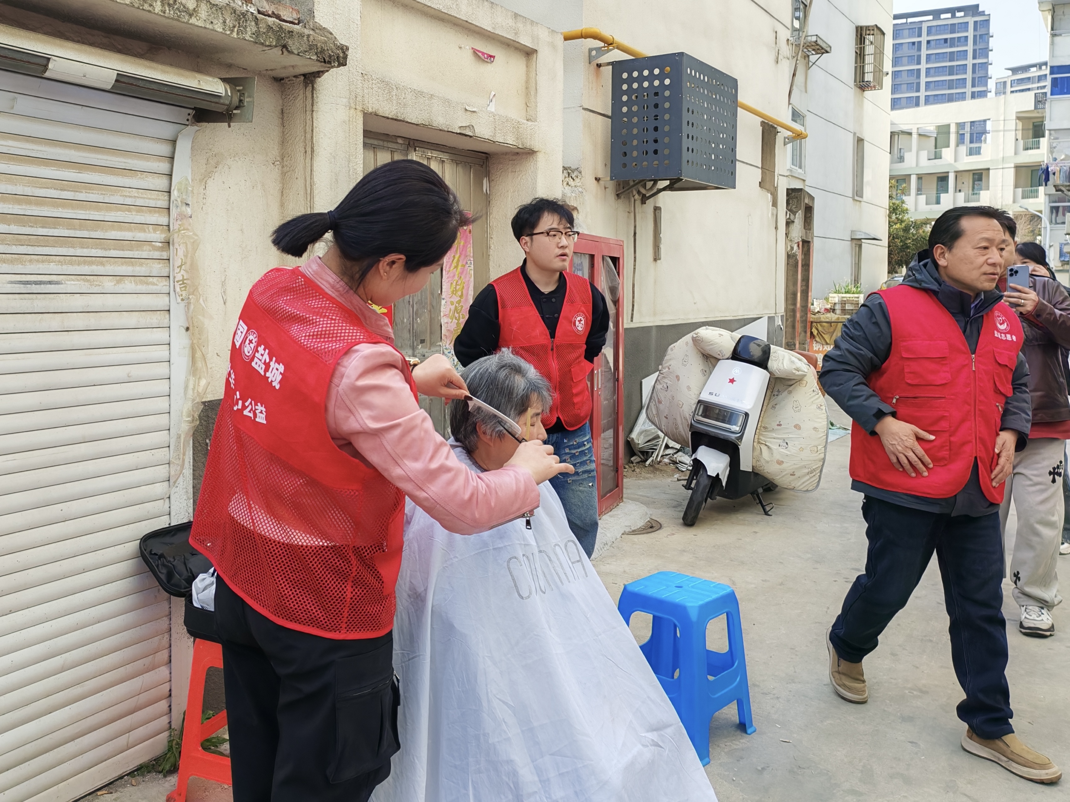 盐城世华公益的工作人员同步开展便民服务,为居民提供免费理发、血糖检测等贴心服务。我院志愿者主动担当、全程保驾护航,在理发摊位前耐心询问老人需求,动作娴熟利落;血糖检测区,大家协助工作人员引导秩序、做好信息登记,配合专业人员细致开展检测、传递健康建议,以高效组织与贴心服务实现精准帮扶。贴心周到的服务,让社区居民在家门口便感受到了实实在在的温暖与关怀。