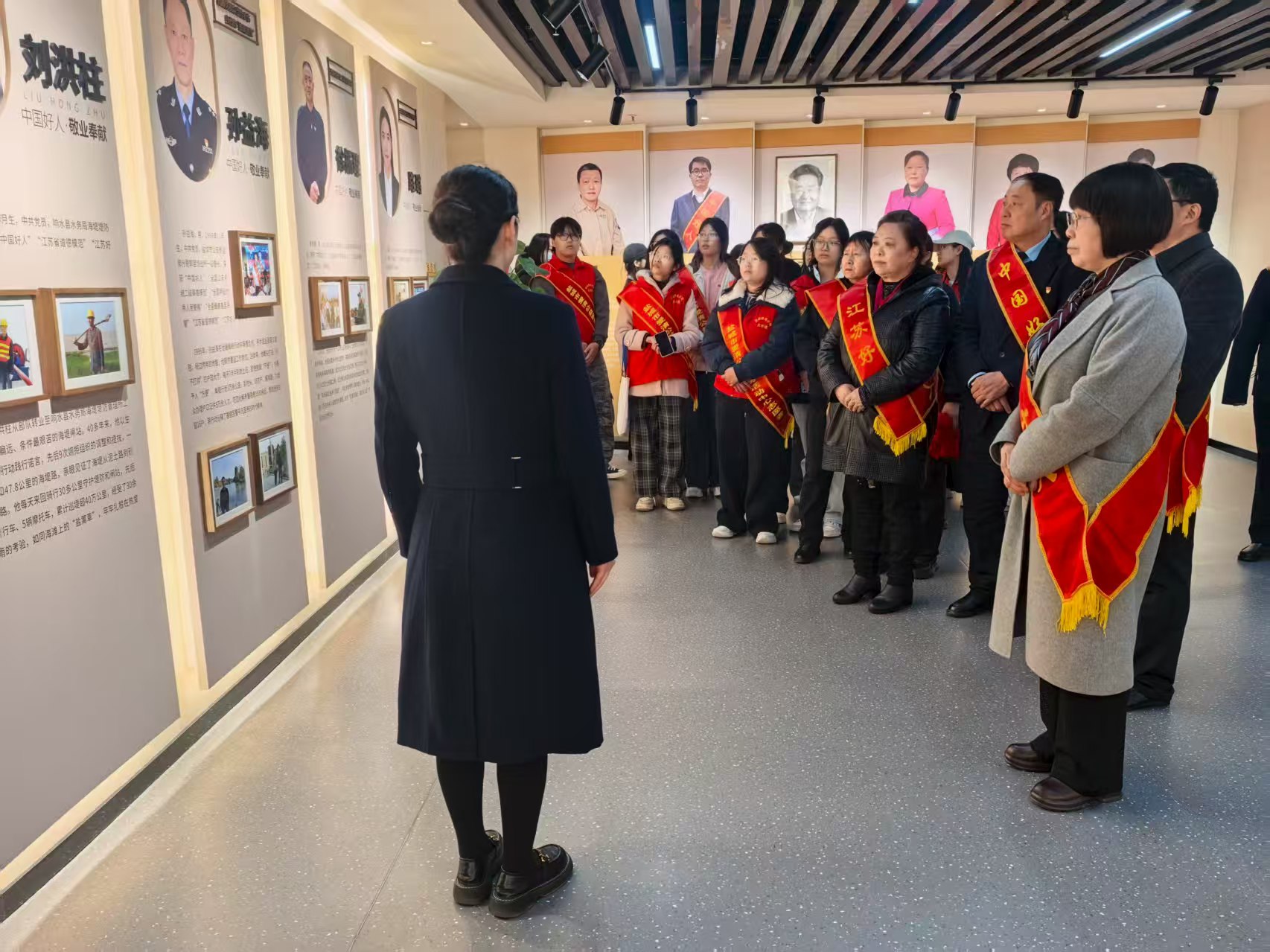 3月21日,文学院联合盐城好人馆、亭湖区新时代文明实践中心举办崇德向善聚力量,榜样模范话担当活动。学生参观好人馆,在讲解员引导下驻足聆听好人故事,感受崇德向善的力量。六位好人代表依次登台分享:刘婵扎根基层心系群众,仇爱清坚持拥军助人为乐,吴登清身残志坚守护乡村健康,房艳诚信经营热心公益,刘保顺退役不褪色服务职工,陆春銮孝老爱亲传承家风。随后,志愿者朗诵《致敬平凡好人,礼赞人间善良》等三篇作品致敬榜样,全体人员共跳《春暖花开》手势舞,同学们还围绕成长困惑、职业规划等与好人代表深入交流,在互动中坚定向善信念。