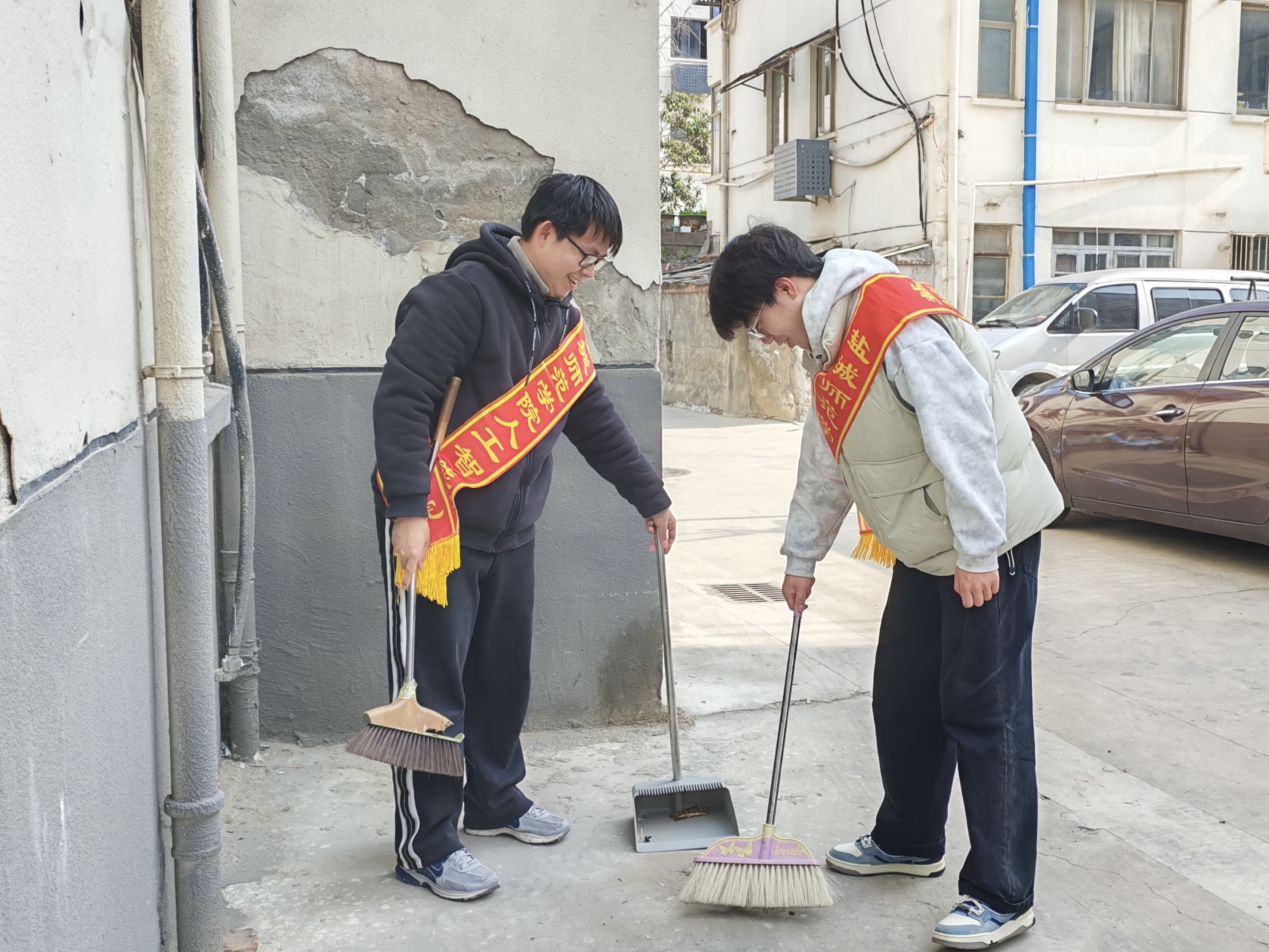 活动现场,志愿者们手持扫帚、簸箕等工具,迅速分工、有序行动,充分展现了工科学子特有的算法思维与实干精神。大家分组对社区公共区域、主干道及居民楼道进行全方位清扫,发挥严谨细致的专业优势,认真清理路面垃圾、卫生死角,高效搬运楼道堆积杂物,用科学思路优化清扫流程,切实改善社区人居环境。经过两个多小时的劳动,社区环境焕然一新,赢得居民一致好评。