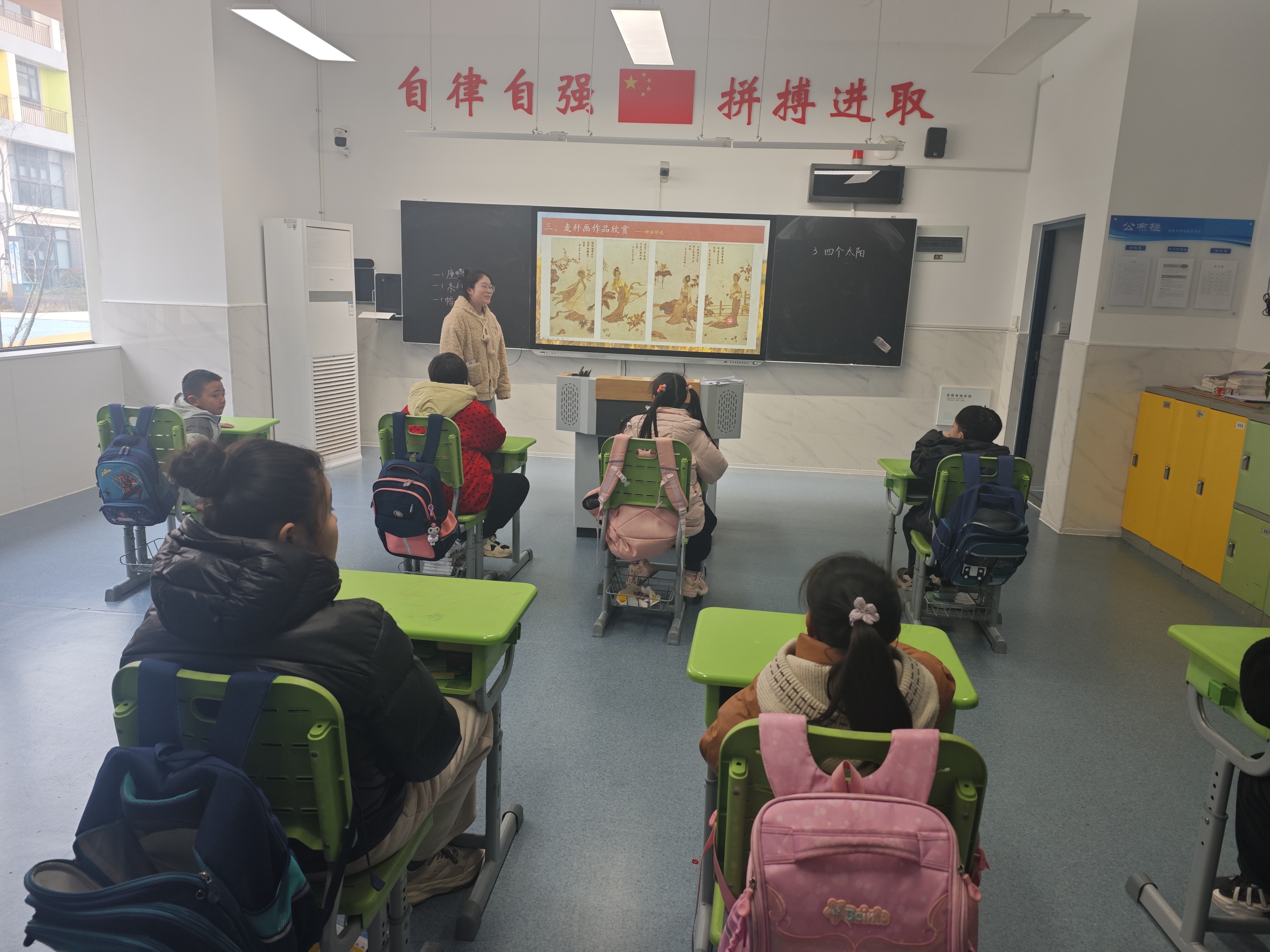 课堂上,志愿者们延续麦秆画传承教学,结合历史脉络与技艺特点,生动讲解这一国家级非物质文化遗产的发展故事,让孩子们直观感受传统工艺的魅力。活动特邀非遗麦秆画大师现场互动,大师手把手指导孩子们挑、压、贴等基础技法,志愿者同步辅助,耐心陪伴孩子们完成简易麦秆画制作。孩子们专注投入,用指尖触摸非遗温度,在色彩与纹理的交织中激发想象力。