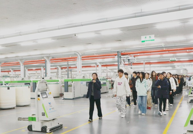 在被誉为“灯塔工厂”的智能制造标杆的江苏悦达纺织集团,悦达集团党委副书记高一山、江苏悦达纺织集团总经理孙仁斌等领导详细讲解了全流程智能化生产车间,从自动抓棉、智能纺纱到数字化质量检测及利用大数据、物联网技术赋能传统纺织业智改数转,实现降本增效与柔性生产等情况。通过实地观摩,同学们对智能制造、工业互联网有了立体认知,也坚定了服务传统产业升级改造的专业信心。