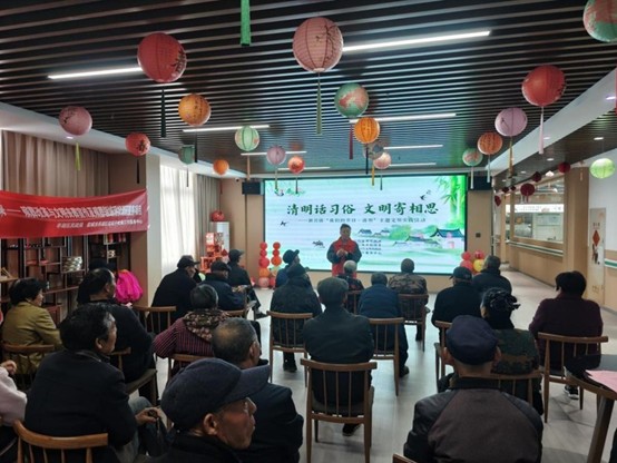 与此同时,商学院团委联合新兴镇三灶村等地举办了“移风易俗”主题文明实践活动,为当地老年群众生动讲解清明节的文化内涵。志愿者们不仅讲述了“清明插柳”“青团祭祖”等传统习俗背后的文化底蕴,更结合绿色环保理念,积极倡导敬献鲜花、栽种绿树、书写心愿卡片等绿色低碳、文明简约的祭祀方式,摒弃焚烧纸钱、燃放鞭炮等陋习,引导群众转变观念,让传统节日在新时代焕发文明新气象。
