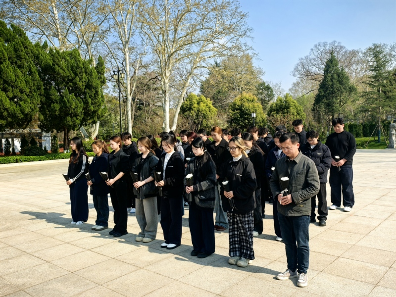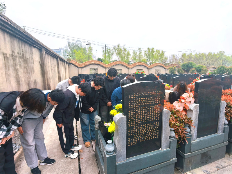 除了实地祭扫,学校还注重通过文化活动与创新形式深化教育效果。文学院在盐城烈士陵园举办了“丹心慰烈”主题志愿活动,朗诵志愿者深情演绎了《冰雕·兵雕》《死鹰岭上的雪魂》等诗篇,用铿锵有力的声音颂扬英雄气概,让红色信仰成为烙印在青年心底的温度。人工智能学院则采取了“线上+线下”融合的方式,一方面组织“王强班”学生通过“云祭扫”平台肃立默哀、献花留言,另一方面带领“春晖社”学子前往烈士陵园实地祭扫,让红色种子在青年心中生根发芽。