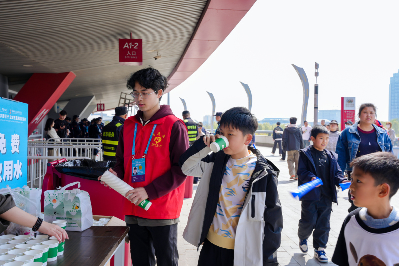 决赛当天,200名青年志愿者早早抵达赛场,迅速奔赴各自岗位。他们身着统一志愿服装,坚守在检票各环节和饮水保障点,用专业与汗水为赛事保驾护航,成为赛场外一道亮丽的青春风景线。为确保3万余名观众有序、快速入场,赛事设置了三道检票流程,志愿者分布其中,各司其职。在预检口,志愿者手持PDA设备配合人工初核,提前分流;在复检口,志愿者熟练操作终端,快速完成正式票务核验;在闸机入口,引导观众有序通过人脸识别与身份证比对,保障入场环节顺畅无阻。此外,志愿者还分布在内场通道各饮水点,维持秩序、引导人流,为观众提供饮用水。