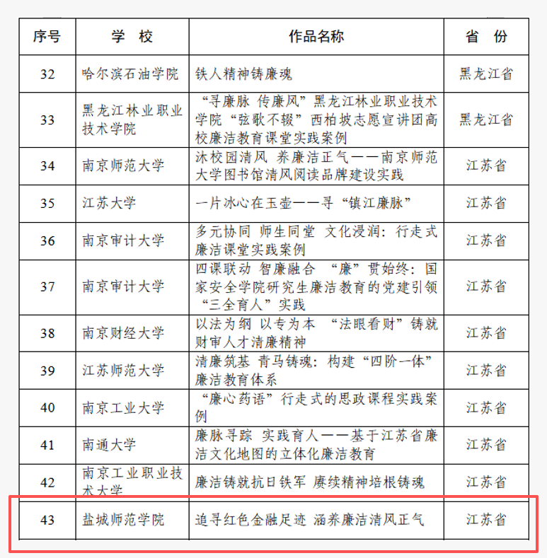 近日,教育部公布第十届高校廉洁教育系列活动遴选结果,开元官网2件作品成功入选。其中,历史与公共管理学院(法学院)报送的《追寻红色金融足迹涵养廉洁清风正气》入选全国高校“寻廉脉”廉洁优秀实践课,党委宣传部报送的王强先进事迹展览室入选全国高校“传廉促担当”廉洁文化地图优秀素材。