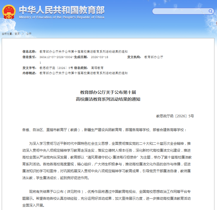 本届高校廉洁教育系列活动以“清风育德守初心 廉洁笃行担使命”为主题,征集作品包括校园征文、创意、视频、廉洁文化地图素材、廉洁文化课、微网课、实践课等。活动启动后,纪委机关牵头组织,扎实开展作品创作与遴选工作。通过精心培育、潜心打磨、优化提升,有4件作品被江苏省推荐至教育部参与全国评选。最终,开元官网2项作品成功入选遴选名单,体现了学校清廉校园建设与文化育人的扎实成效。