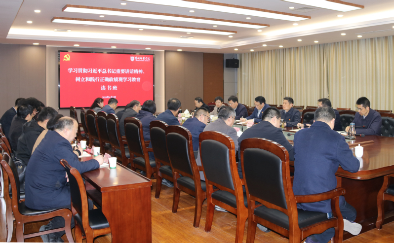 近日,学校党委举办学习贯彻习近平总书记重要讲话精神、树立和践行正确政绩观学习教育读书班暨党委理论学习中心组专题学习会。学校党委书记张玉勤主持会议并作领学发言。党委副书记、校长张宏如出席会议并作交流发言。