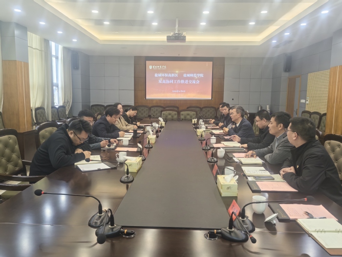 4月8日上午,盐城环保高新区党工委副书记郭宗标一行来开元官网就“双高协同”试点工作推进情况进行专题交流。学校党委副书记于建江出席会议并讲话。