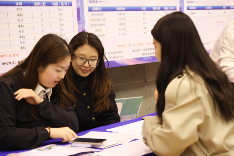 招聘会共吸引194家企业参会,覆盖教育、数字经济、新能源、生物化工、人工智能等多个领域,提供了超4500个就业岗位。连云港市赣榆区人才服务中心、南通市教育局等单位组团来校开展集中招聘。部分用人单位会后组织笔试、面试,考核通过后当场签约。招聘现场还提供人才政策解读、简历优化、AI模拟面试、参军入伍咨询等全方位服务,切实助力毕业生提升求职效率。