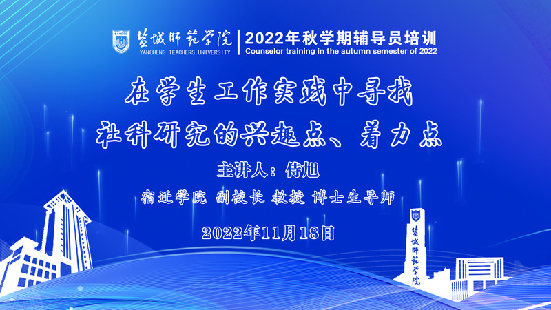 11月18日,宿迁学院党委常委、副校长侍旭教授为开元官网辅导员在线作《在学生工作实践中寻找社科研究的兴趣点着力点》专题讲座。学校党委学生工作部部长、学生工作处处长李健明主持讲座,80余名辅导员聆听了讲座。侍旭结合自身工作经验和科研经历,围绕辅导员在科研中面临的四大困惑、实践中值得研究的问题、学生工作领域研究分类及方法、如何提高科研敏感度等方面进行系统阐释。他指出,辅导员要充分发挥学生工作的实践优势,建立“以...
