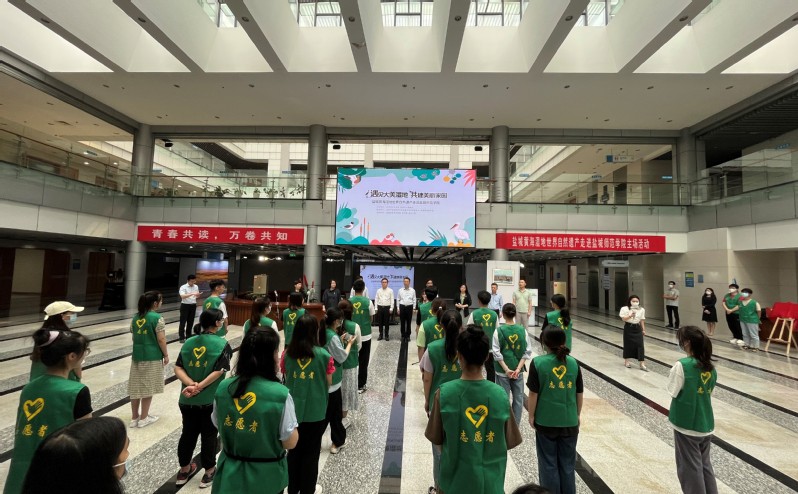 6月1日,盐城黄海湿地世界自然遗产进校园主场活动在新长校区图书馆顺利召开。学校党委副书记于建江、共青团盐城市委书记翟大伟等领导出席活动,并为志愿者授旗。 活动中,于建江与志愿者代表亲切交流,详细询问同学们年级、专业以及参与志愿活动的基本情况。他亲切地为志愿者代表授旗,并鼓励同学们在完成好学业的同时更多地参与到黄海湿地宣传保护的志愿服务活动中来,在实践中进一步认...