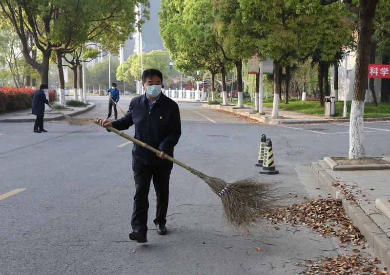 【抗疫进行时】戴斌荣、方忠等校领导与师生共同清扫校园