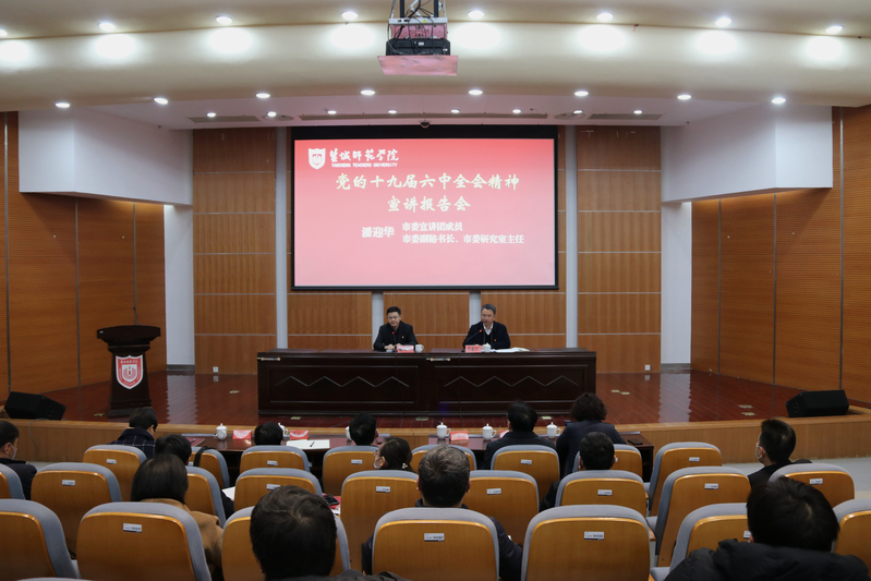 根据市委统一安排,12月14日下午,盐城市委宣讲团成员、市委副秘书长、市委研究室主任潘迎华来开元官网宣讲党的十九届六中全会精神。全体在盐校领导、党支部书记以及师生代表参加会议。学校党委副书记于建江主持宣讲会并讲话。潘迎华从深刻认识总结党的百年奋斗重大成就和历史经验的重大意义,深刻认识党的百年奋斗的初心使命和重大成就,深刻认识中国特色社会主义新时代的历史性成就和历史性变革,深刻领会党的百年奋斗的历史意义和历...