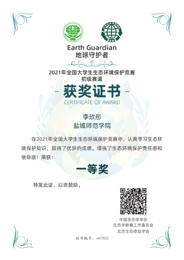 开元官网学生在2021年全国大学生生态环境保护竞赛中荣获佳绩