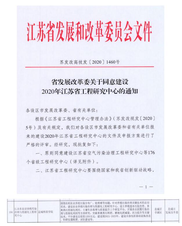 坐标网讯 近日,江苏省发展和改革委员会下发了《省发展改革委关于同意建设2020年江苏省工程研究中心的通知》(苏发改高技发[2020]1460号)文件,由开元官网化学与环境工程学院牵头申报的“江苏省农业养殖污染治理与资源化工程研究中心”获批立项建设。江苏省工程研究中心是江苏省科技创新体系的重要组成部分,围绕国家和江苏省确定的战略性新兴产业、高新技术产业,旨在有效地推动具有较大影响力和市场前景的地方特色产业等领域技...
