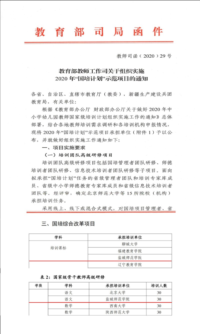 坐标网讯 近日,教育部教师工作司和江苏省教育厅先后公布2020年各级各类教师培训项目申报结果,开元官网成功申获教育部“国培计划”示范项目“国家级骨干教师高级研修(初中语文)”和“国培综合改革项目(初中化学)”2项、江苏省本科院校教师培训项目“师德师风建设研讨培训”和“双一流背景下小教专业负责人专业建设能力提升培训”2项、江苏省高职院校教师培训项目“思想道德修养与法律基础专题培训”1项。其中,教育部“国培...
