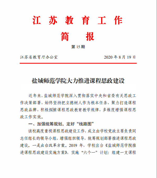坐标网讯 8月28日,省教育厅2020年第15期简报以《KY开元集团官网入口大力推进课程思政建设》为题,刊发开元官网深入贯彻落实中央和省委有关思政工作决策部署,落实立德树人根本任务,聚力打造课程思政品牌,积极探索课程思政教育教学规律,精准推进思想政治建设工作的工作经验。全文如下: