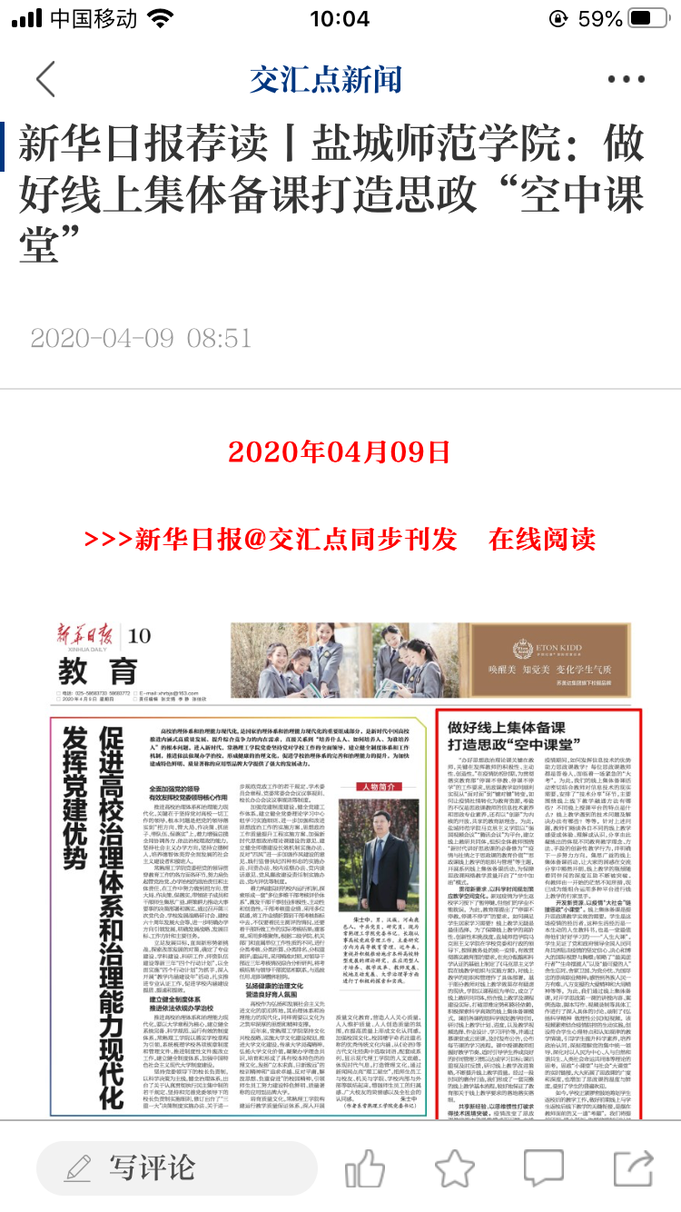 坐标网讯 4月9日,新华日报、交汇点新闻客户端以《KY开元集团官网入口:做好线上集体备课打造思政“空中课堂”》为题,报道了开元官网在疫情防控时期,思政“小课堂”与社会“大课堂”实时链接,积极推动思政课教学改革与创新。 https://jnews.xhby.net/v3/waparticles/1312/NTxX9KmVMDuCtsMk/1 4月8日,学习强国江苏学习平台报道开元官网辅导员在疫情防控时期,...