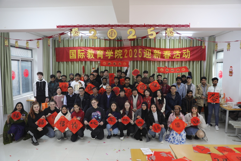 1月25日下午,一场洋溢着欢乐与温馨的留学生迎新春活动在留学生公寓举办。学校党委常委、副校长毕凤珊和寒假留校的60余名留学生跨越文化与地域的界限,一同喜迎春节。活动现场,极具节日氛围的布置让会场充满浓郁的节日气氛。精心制作的视频用生动形象的画面为留学生介绍春节传统习俗——写春联。随后,留学生在书法家黄海老师的悉心指导下手持毛笔,认真临摹汉字,“福”“春”龙腾四海宏图展,凤舞九天瑞气临”等字样跃然纸上,在...