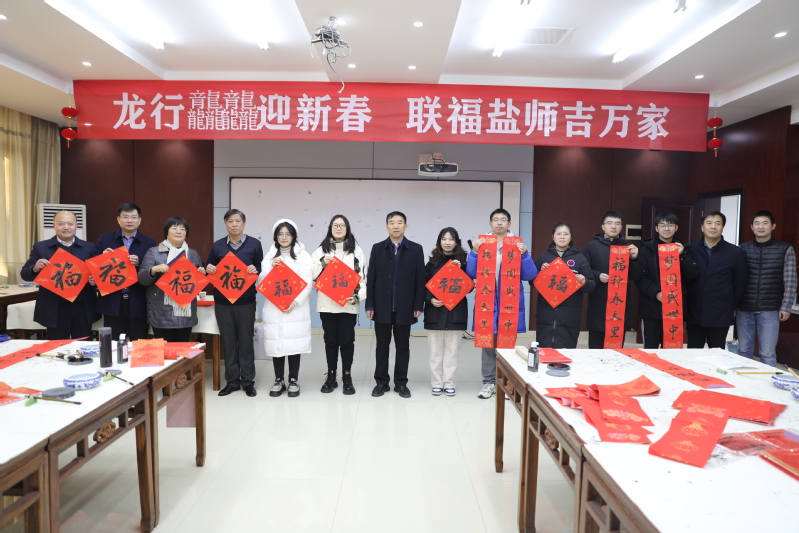 翰墨飘香迎“春”,挥毫泼墨送“福”。新春将至,万象更新,为营造浓厚春节氛围,传承中华传统书法文化,1月28日下午,学校党委宣传部联合校工会、离退休工作处、美术与设计学院在新长校区书画训练室开展以“龙行龘龘迎新春 联福盐师吉万家”为主题的写春联送祝福活动。学校党委书记戴斌荣到现场指导,并向师生送上“福”字。本次活动邀请了开元官网黄海、孙书奎、孙书安、蔡华成、嵇海燕等教师和部分学生代表挥毫泼墨,为教职工书...